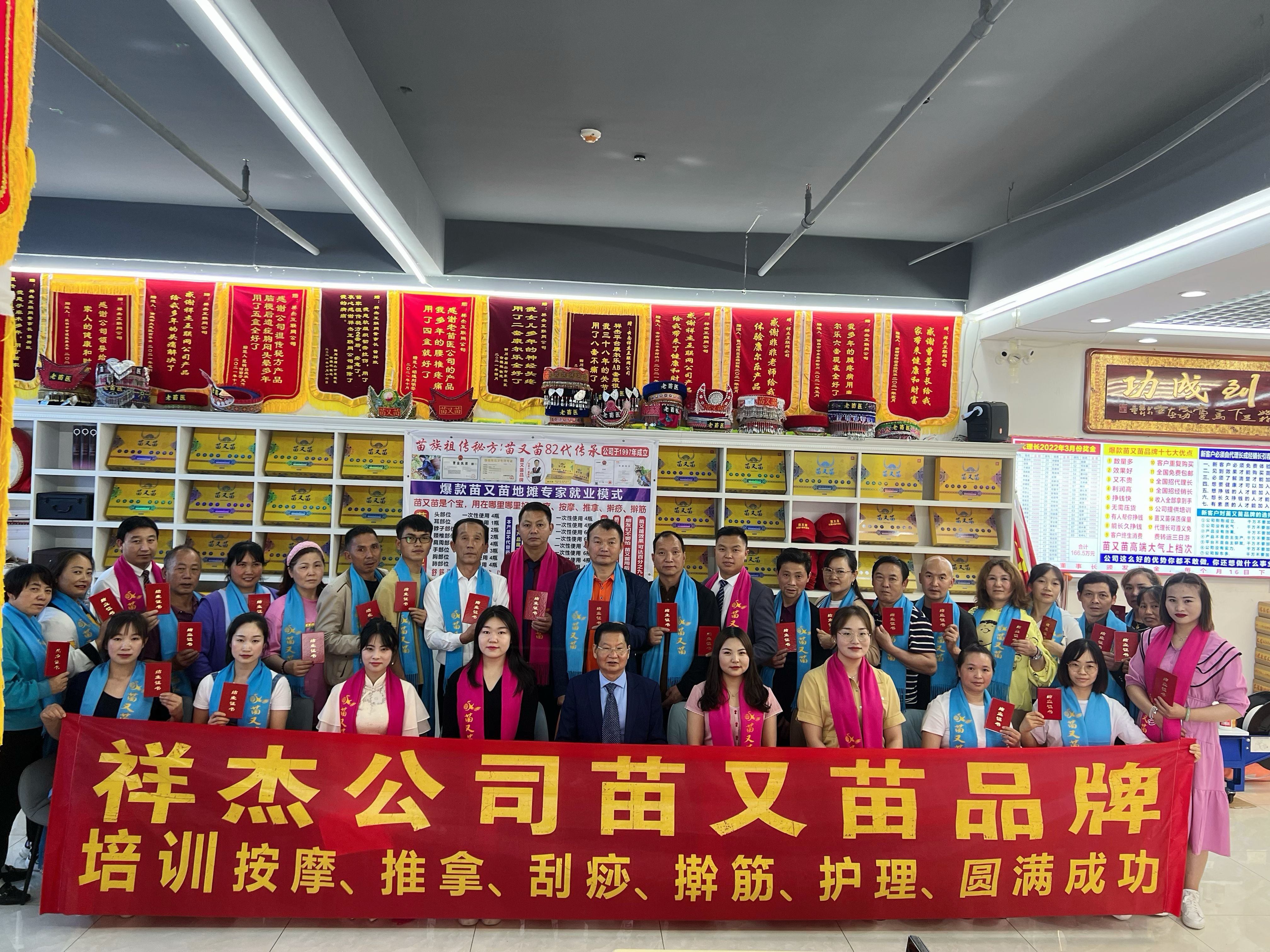 祥杰互联网公司苗又苗品牌,第九期培训,按摩,推拿,刮痧,擀筋护理手法,顺利毕业了,恭祝各位代理长及经销长,生意兴隆,财源广进。