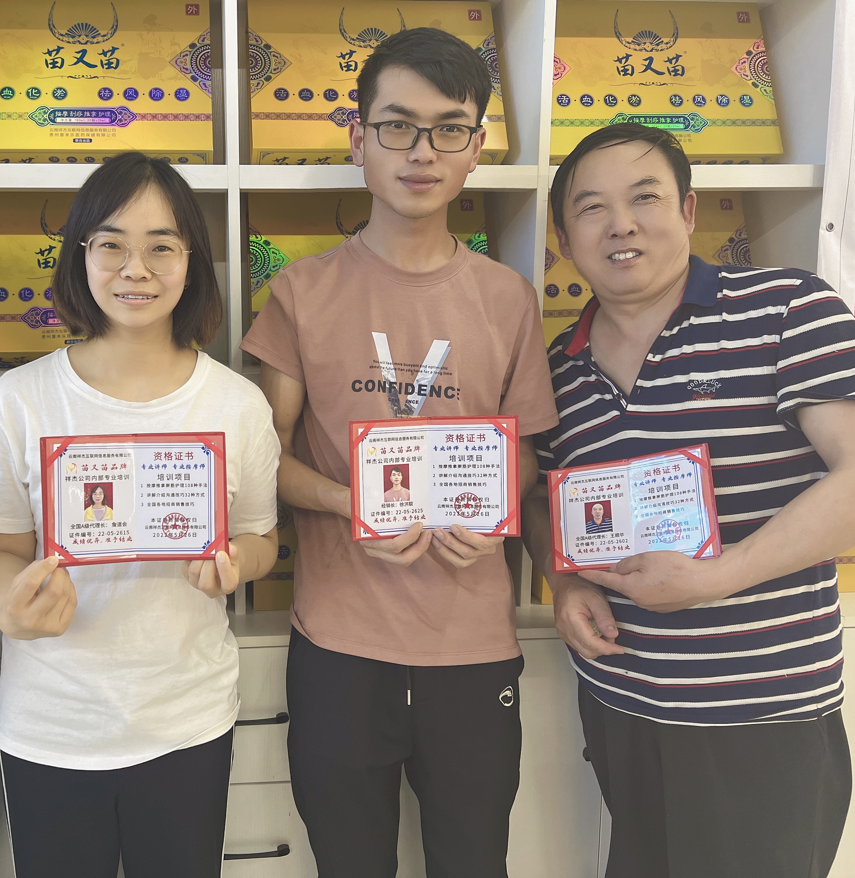 祥杰互联网公司苗又苗品牌,第五期培训,按摩,推拿,刮痧,擀筋护理手法,顺利毕业了,恭祝各位代理长及经销长,生意兴隆,财源广进。